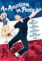 Jerry Mulligan (Gene Kelly) stayed on in Paris after the war ended. He paints in his tiny, Rube Goldberg apartment on the Left Bank, studying art and selling paintings in the street to survive. He’s got interesting, creative, talented friends: Adam Cook (Oscar Levant), a concert pianist, and Henri Baurel (Georges Guétary), a singer. At least two of the three of them aren’t gay (as is usually the problem in NYC) — Jerry and Henri are both in love with perfume shopgirl Lise Bouvier (Leslie Caron), who just happens to be able to dance up a storm.