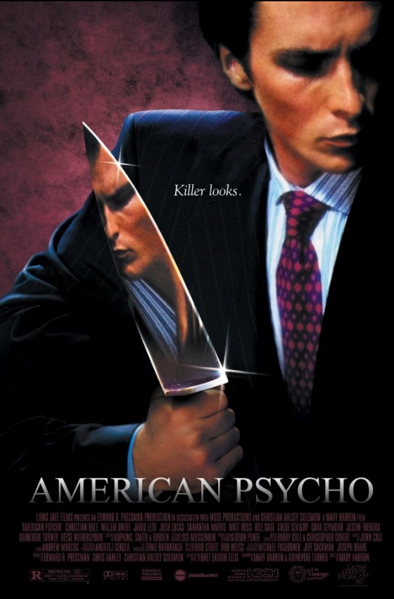 American Psycho opens with Hitchcockian strings warp-warping as sticky red blood drips down a white screen… or is it blood? This touch of black whimsy isn’t the only one to be found here, but it does serve to warn the viewer that this is not going to be your standard serial-killer-on-Wall Street flick.