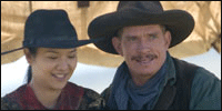 And then we meet rancher Print Ritter (Duvall: Kicking & Screaming, Secondhand Lions) and his nephew, Tom Harte (Thomas Haden Church: Over the Hedge, Sideways), who are embarking on an uneasy partnership as dealers in horseflesh. As they drive their new herd of 500 horses west to Wyoming, they cross paths with the Chinese women in the keep of the creepy Billy Fender (James Russo: Open Range, The Ninth Gate), who’s transporting them to some godforsaken mining town where they’ll be the toys of the horny miners, the very short-term employee of whorehouse mistress Big Rump Kate (Rusty Schwimmer: Runaway Jury, The Perfect Storm), who does not have a heart of gold.