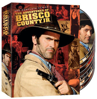 By decree of me, I declare this week Bruce Campbell Week all week here at FlickFilosopher.com. No, it’s not Bruce’s birthday (that was last month), and no, he has not wisely chosen to come live with me and be my love slave. So I guess there really isn’t all that much to celebrate, is there…? Oh, no, wait: I remember. Bruce is giving us two gifts this week: complete DVD collections of The Adventures of Brisco County Jr. and Jack of All Trades, both of which will be released tomorrow. It’s almost too much excitement for me to bear, and so I figured maybe I could let off some of that steam with long snarky rambling reviews of both sets, and maybe a Bruce bonus or two later in the week — there’s one new feature I’ve been meaning to inaugurate here for a while now, and since there’s a Bruce connection, this just might be the week to launch it. So stay tuned over the course of the week and see in how many different ways I can worship the geeky divinity that is Bruce Campbell.