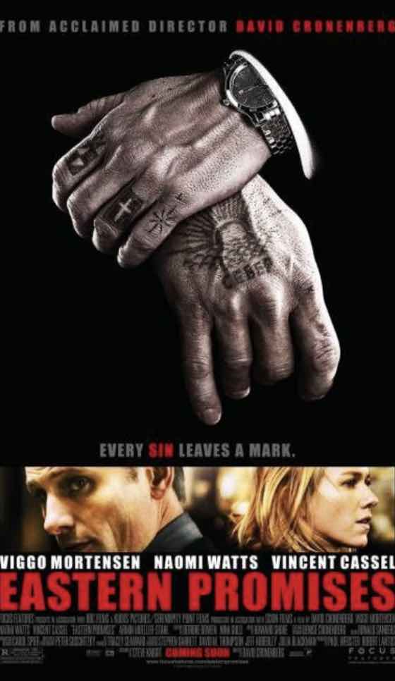 It’s with the quietest hospital emergency-room scene imaginable that the film opens. No doctors yell, no machines ping or bleep — it’s in that frosty calm that a 14-year-old girl dies just as her baby is born. Midwife Anna (Naomi Watts: The Painted Veil, King Kong) takes up the newborn’s cause, seeking out the family, if she can, of the unidentified teenager. A business card in the girl’s bag leads her to a Russian restaurant run by Semyon (Armin Mueller-Stahl: Mission to Mars, The Thirteenth Floor), whom we can tell right off is a bad lot: he’s all about the stealthy threat of an old man who’s survived a long time in a dangerous situation. His son, Kirill (Vincent Cassel: Ocean’s Thirteen, Derailed), is a violent hothead held just barely in check by his driver and just-about friend, Nikolai (Viggo Mortensen: Hidalgo, The Lord of the Rings: The Return of the King). They’re all members of the Russian mob that has its tendrils snaking deep into the sordid side of the city. And the more Anna learns about them and about their connection to the dead girl and the baby, the more she pushes back at their menace, and the more we fear for what she’s daring.