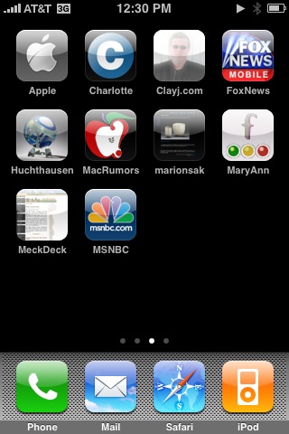Apparently some folks are reading my stuff on their iPhones, and further apparently, it’s possible for sites to offer custom icons — like a favicon for the iPhone. So I made one, and here it is in action on the iPhone of reader Clayj, who alerted me to this important new opportunity to promote myself: