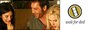 Mostly what you need to know about VCB is this: Cristina is Woody. Vicky is Mia. They have the same conversations we’ve heard a million times before in Allen’s movies. And you don’t have to disagree with Allen’s philosophy and attitudes about love to find them tedious here: they’ve become platitudes. “I love him but I’m not in love with him,” one character says here. *yawn* And the other targets that Allen pokes tentative sticks at — like American smallmindedness and consumerism — seem like afterthoughts, they’re treated with such mildness.