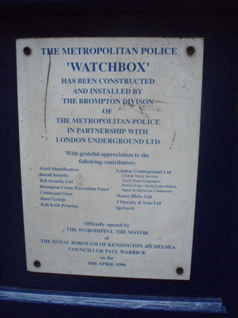 You know what – in three years living five minutes’ walk away, I never once looked at the label on that thing? According to a site I found though, it was built as a CCTV box (hence the “watchbox”) thing – not for any DW-related publicity!