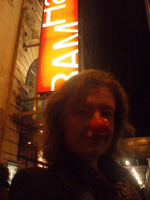 I attended a performance of The Bridge Project’s production of Shakespeare’s The Winter’s Tale at the Brooklyn Academy of Music on Friday night. And here I am outside the BAM Harvey theater wearing my Red Nose Day red nose.