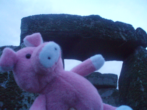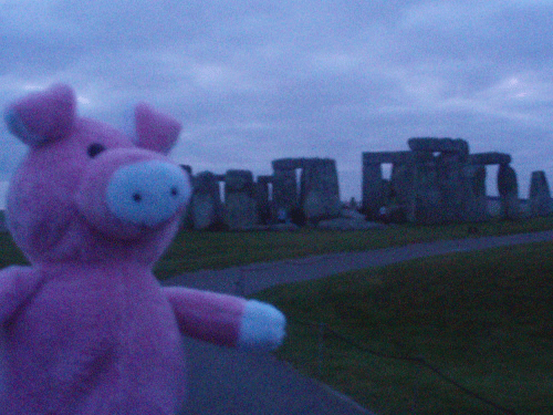 Nigel the Charity Pig had a day exploring neolithic England on Monday. It began with a predawn drive to Stonehenge — a little over two hours from Stratford-upon-Avon, which included a stop for coffee along the way: