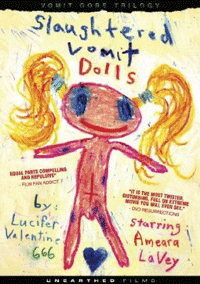 Slaughtered Vomit Dolls is the opening film of the infamous Vomit Gore Trilogy directed by Lucifer Valentine. We must warn you that the thoroughly evil and outrageous DVD that you hold in your hands contains the answer to a very elemental question. How deranged, demented and depraved can one person’s existence be? Are you willing to push the boundaries in order to find out? Are you confident enough to test the true strength of your grip on reality? You won’t believe your eyes… or STOMACH! Includes commentary with director and star plus Making of the Film and The History of Vomit Gore.
