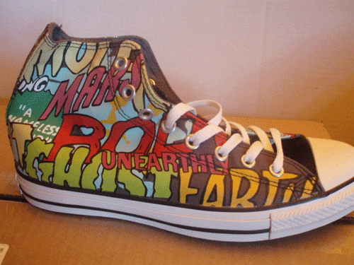 I have quite a collection of Converse sneakers already — hightops and low both — but I couldn’t resist adding these to my wardrobe when I came across them on eBay: