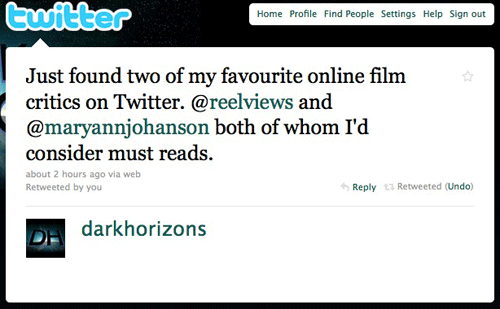 Garth Franklin of Dark Horizons considers me a must-read. Nice.