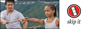 No, it’s true. Jaden Smith (The Day the Earth Stood Still, The Pursuit of Happyness) is the adorable and small-for-his-age 12-year-old Dre Parker, who moves with Mom (Taraji P. Henson: Date Night, The Curious Case of Benjamin Button) from Detroit to Beijing because, well, that’s how the floundering U.S. car companies are dealing with the collapse of their industry: transferring their employees to China. Instantly — no, really, like the minute they land — Dre is getting beat on by teenage Chinese bullies led by the horrifically one-note Cheng (Zhenwei Wang) because Dre has the nerve to like-like violin-playing Meiying (Wenwen Han), and inappropriate likage of the female always brings out the male’s protective instinct, or something. Also: All Chinese girls play the violin. Dre gets a crapload of crap beaten out of him, to the point where it starts to get real uncomfortable: do people actually want to see a little kid take this kind of thrashing? (Director Harald Zwart [Agent Cody Banks, One Night at McCool’s] seems into making sure we know just how much physical abuse this kid is taking… but maybe he figures we like abuse after sitting through his Pink Panther 2. It’s a theory, anyway.)