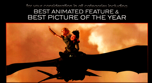 I don’t remember ever receiving any for-your-consideration materials this early in the season, but DreamWorks Animation must be feeling some intense pressure this year, because they’ve gotten the jump on everyone else. Last week I received a full-color brochure — complete with invites to FYC screenings in Los Angeles, New York, San Francisco and London — for How to Train Your Dragon. DreamWorks is pushing the film for Best Animated Feature and Best Picture as well as a slew of technical categories.