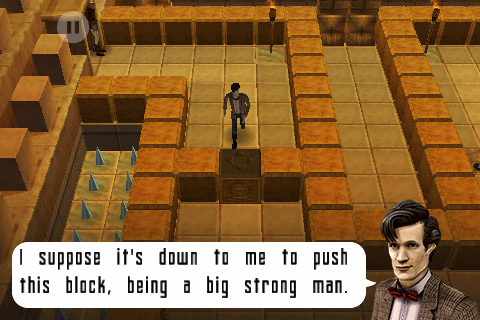 Got an iPhone, an iPod Touch, or an iPad? Then get yourself over to iTunes and download the brand new game Doctor Who: The Mazes of Time (coming soon for Android phones). It’s a puzzle-based adventure game wherein you play both the Doctor and Amy as they run around and solve timey-whimey brainteasers and run up against Daleks and Cybermen and — I’m told; I haven’t gotten that far yet — Silurians.