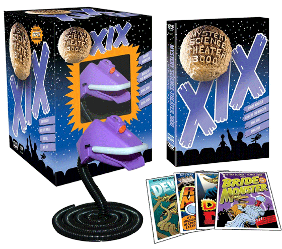 The other films getting the riff-a-riffic treatment are Robot Monster, Devil Doll, and Devil Fish. Extras in the set include Joel “Robinson” Hodgson reflecting on the “invention exchange” bits, video from a 2009 CONvergence panel, and more.