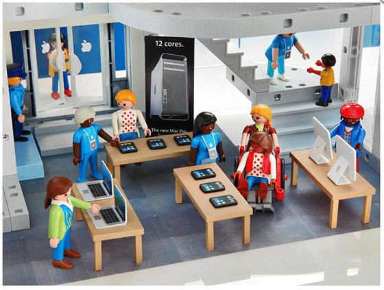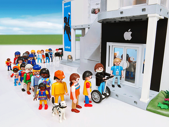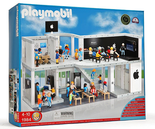 So when we spotted this amazing Apple Store Playset from PLAYMOBIL™ we were admittedly in a bit of a conundrum. On the one hand, it’s a product designed for children much younger than ourselves. On the other hand, it’s a tiny representation of the store which sells us all the shiny Apple goodies we can’t resist. Then we noticed that the PLAYMOBIL™ iStore includes amazingly tiny iPhones, Macbooks, and iPads. Our resolve began to waver. A quick peek at the miniature Genius Bar and we were feeling a bit woozy. Then we saw the tiny Steve Jobs presenting in the Keynote Theater on the top floor and that was it. Our wallets popped out faster than you can say Jonathan Ive and we plunked down whatever money was needed to own this amazing playset.