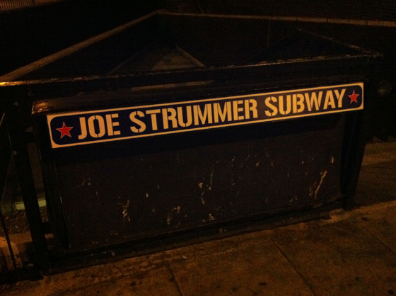 Joe Strummer subway, on Edgeware Road. (For the not Anglophilically inclined, a subway in the U.K. is a pedestrian passage under the street, not an underground train.)