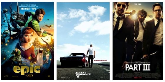 Check out my reviews: The Hangover Part III, Fast & Furious 6, and Epic.