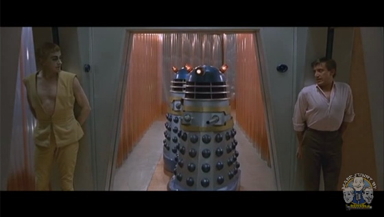Before Matt Smith, before David Tennant, before Christopher Eccleston, before even the scarf and afro guy, there was Peter Cushing. Well, not before, exactly, because this feature-length movie isn’t a canonical part of the Doctor Who universe or storyline. So it’s sort of more adjacent, than before. It’s nearby, if nothing else. Approximate, at least. Like, Dr. Who is in it! But instead of a mysterious Timelord alien, he’s kind of just a confused human grandpa with the last name Who. But he does have a TARDIS! Of course, instead of a disguised alien craft it’s just, like, this junky thing he made with his granddaughter. Oh yeah, he hangs out with his granddaughters. Yeah. But then they travel through space and fight the most classic Dr. Who bad guys of all, the Daleks! Of course, in this imagining of Dr. Who, the Daleks are just some dopey trashcan looking guys with plungers sticking out of ‘em that talk funny — oh, that’s how they still are? Seriously?? PERFECT! IT’S CANON AFTER ALL!