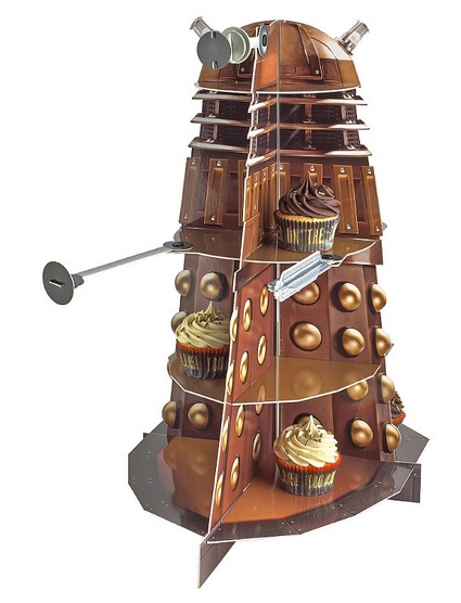 And what do you do with those Dalek cupcakes once they’re out of the oven, cooled, and frosted? Why, you display them on this Dalek cake stand: