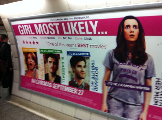 I’ve been reading your site for a while now and thoroughly enjoy your reviews – and today I was really impressed to see you quoted on a poster in the London Underground, for Girl Most Likely.