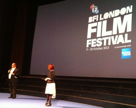 Introducing the secret film tonight: Wong Kar Wai’s The Grandmaster. (Yes, it was the chopped-up version Weinstein Co. is releasing for Western consumption.) (That’s LFF director Clare Stewart with him.)