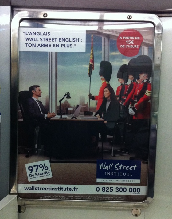 “Learn business English from the Wall Street Institute, and it’ll be as if you have all the power of the British Empire at your back. Because an army of Goldman Sachs stockbrokers would just be too damned scary.” (Spotted on the Metro.)
