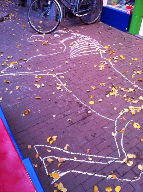 Drawn on the sidewalk outside a toy store, because why not?