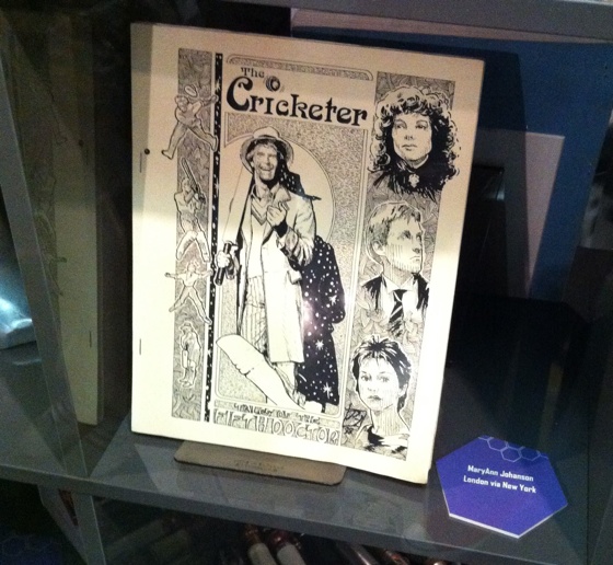 Today: fanzines. It’s a shame these were not available to visitors to actually flip through and read. We could but enjoy the covers. Such as this one, my own zine, The Cricketer: