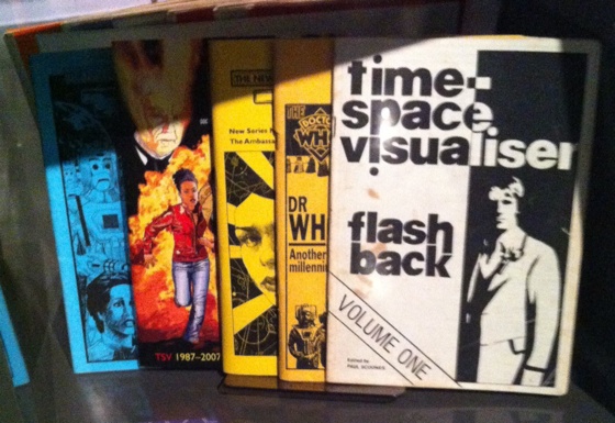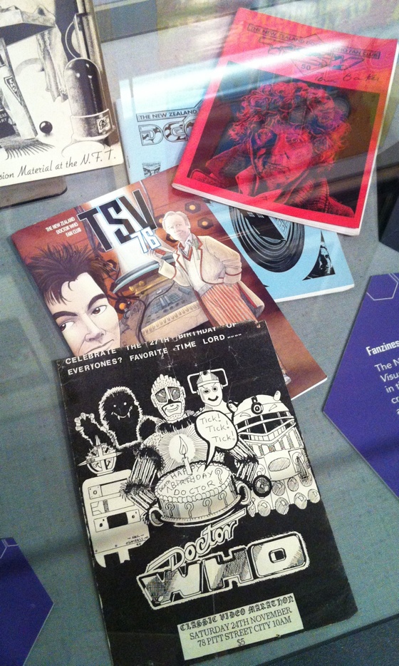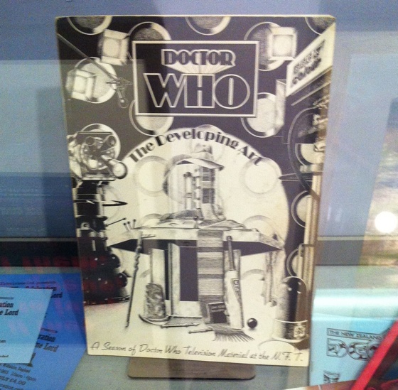 A lot of the zines seem to be issues of TimeSpace Visualiser, the archives of which are online at doctorwho.org.nz/archive . ‘Doctor Who – The Developing Art’ was the NFT season of Doctor Who retrospectives in 1983, and the season subsequently went on tour around the UK to NFT affiliates. Seeing all these shows that I really should have submitted a proposal for the exhibition – I’d even taken some photographs…