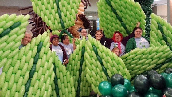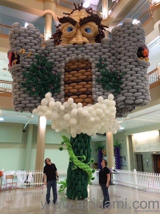 The event was organized by Airigami, and there’s more info on the beanstalk-building at Balloon Manor. Here’s what it looked like in progress: