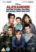 Here we have Alexander (Ed Oxenbould) who, on the day before his 12th birthday, has the worst possible day ever for an upper-middle-class white boy in Southern California. He accidentally burns the science-lab notebook of pretty Becky (Sidney Fullmer), whom he’s got a crush on. He gets teased in a way that is “gross and sexist” (sez Becky, not that that will stop the movie from indulging in it anyway *sigh*) in front of the whole middle school. He learns of a birthday party that will be competing with his, thrown by a kid who has a rep for hosting awesome parties (for middle-school values of awesome). And this on a day when the entire rest of his family — publishing exec Mom (Jennifer Garner: Dallas Buyers Club, The Odd Life of Timothy Green), out-of-work rocket scientist Dad (Carell: Anchorman 2: The Legend Continues, Despicable Me 2), big brother Anthony (Dylan Minnette: Labor Day, Prisoners), big sister Emily (Kerris Dorsey: Moneyball, Just Like Heaven), and even infant newbie intruder Trevor (Elise and Zoey Vargas: Neighbors) — have had a great day.