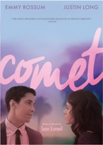 There’s no difference between reality and dreams,” Dell (Justin Long: Veronica Mars) informs Kimberly (Emmy Rossum: Before I Disappear). That’s supposed to be romantic, maybe. Or else it’s a Clue to what’s really going on in Comet, a tedious dramedy from first-time writer-director Sam Esmail that jumps around several years of their relationship as they argue and debate who loves whom more. He’s a Sherlockian asshole who insults people for fun and figures he might be the smartest person on the planet; she’s a lovable kook with bad taste in men; together, they are even more annoying than they sound, and have nothing in the least bit memorable to share with us about relationships, love, sex, the meaning of life, or anything at all. Could the jumping around in time mean that Dell is merely dreaming his memories? Is he experiencing alternate universes in which his relationship with Kimberly is exactly the same as it is in every other parallel dimension? It’s like that Steven Wright joke about all his stuff getting stolen and replaced with exact duplicates: what difference does it make? Except here it’s not funny.