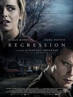 Alejandro Amenábar (Agora) would like you to believe that Regression is based on a true story, probably in the hopes that that impression elevates its solemn silliness somewhere into the realm of the plausible. It does not… and anyway, there’s nothing true here beyond the most general of circumstances. Yes, in the 1980s and 1990s, mass hysteria about Satanic cults holding black masses in which babies were murdered, children were sexually abused, and adults were tortured did indeed sweep the U.S. and much of the English-speaking world. But the particular details of this story are wholly invented, and where Amenábar — who wrote the script and directs — takes them does absolutely no justice to the phenomenon, and actually ends up in a place that is repulsive and arguably even dangerous in a way that has implications beyond the Satanic panic. In Minnesota in 1990, a cop, Kenner (Ethan Hawke: Ten Thousand Saints), begins investgating the case of a 17-year-old girl (Emma Watson: Noah) who is accusing her father (David Dencik: Serena) of molesting her; Kenner eventually unravels what looks to be a vast conspiracy in the small town that includes murder and child pornography. Amenábar might be aiming for a noirish X-Files vibe — all is gray, rainy, and grim here — but preposterousness rules: it’s appallingly unlikely, say, that the shrink (David Thewlis: Legend) Kenner brings in to help interview victims and suspects doesn’t realize how much he is leading them toward the answers he wants. Vulnerable, suggestible people in real similar cases did indeed “remember” things that never happened, but if those false memories were implanted in so blatant a way as we see here, Amenábar has missed a much bigger story. We might say that the director himself has regressed, to the genre trappings of his most successful project, 2001’s The Others, but unlike that wonderfully chilling and moving film, this one is an inert, unscary trudge toward forgettable inconsequence.