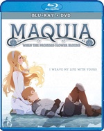 Maquia (the voice of Manaka Iwami) is a near immortal, already centuries old but appearing to be a teenager, when her people, the peaceful Iorph, are attacked by a jealous king seeking the secret to their longevity. Driven into the larger world, she rescues an orphaned mortal infant, another victim of the Iorphs’ invaders, and adopts him as her child. The Iorph warn against falling in romantic love with mortals they will long outlive… but what about falling in maternal love? And yes, that presents similar dangers — and joys — to the immortal soul.