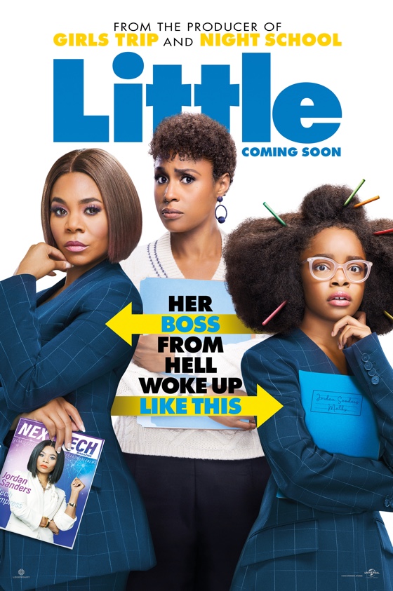 It’s Big in reverse (and gender swapped)… and it doesn’t work. Like, at all. When boss-from-hell tech CEO Jordan Sanders (Regina Hall: Vacation, Death at a Funeral) is nasty to the wrong nerdy little girl, Stevie (Marley Taylor), the kid curses Jordan to revert to being a powerless child herself. And so Jordan wakes up the next morning a kid again, played by 14-year-old Marsai Martin, who isn’t only a producer of this limp yet desperate comedy but supplied the idea for it as well. Yet in spite of some grownup involvement — from director Tina Gordon, who cowrote the script with Girls Trip’s Tracy Oliver — Little plays like a kid’s idea of what it means to be an adult and what the grownup world is like.