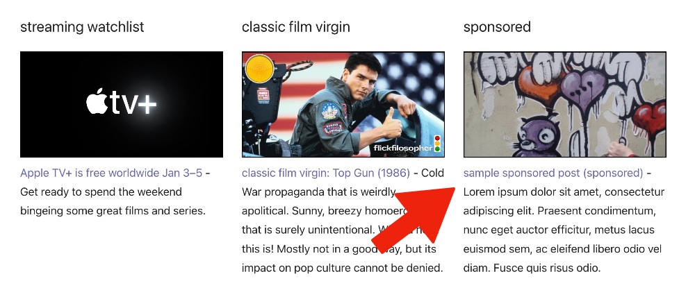 There are no ads on FlickFilosopher.com, no annoying pop-ups. Your sponsored post will not be lost in a sea of digital garbage.
