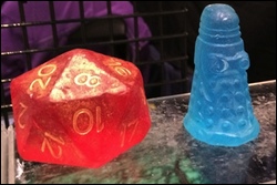 Handmade yarny TARDIS bags, with proceeds going to pay for cancer patients’ medical bills in an NHS-bereft land.
