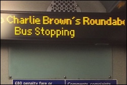 I’ve been riding this bus for more than three years, and I have never before seen “Charlie Brown’s Roundabout” as its destination.