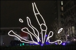The King’s Cross Pond got an extra added bit of art: a diving board made entirely of light.