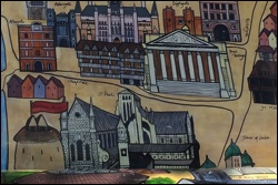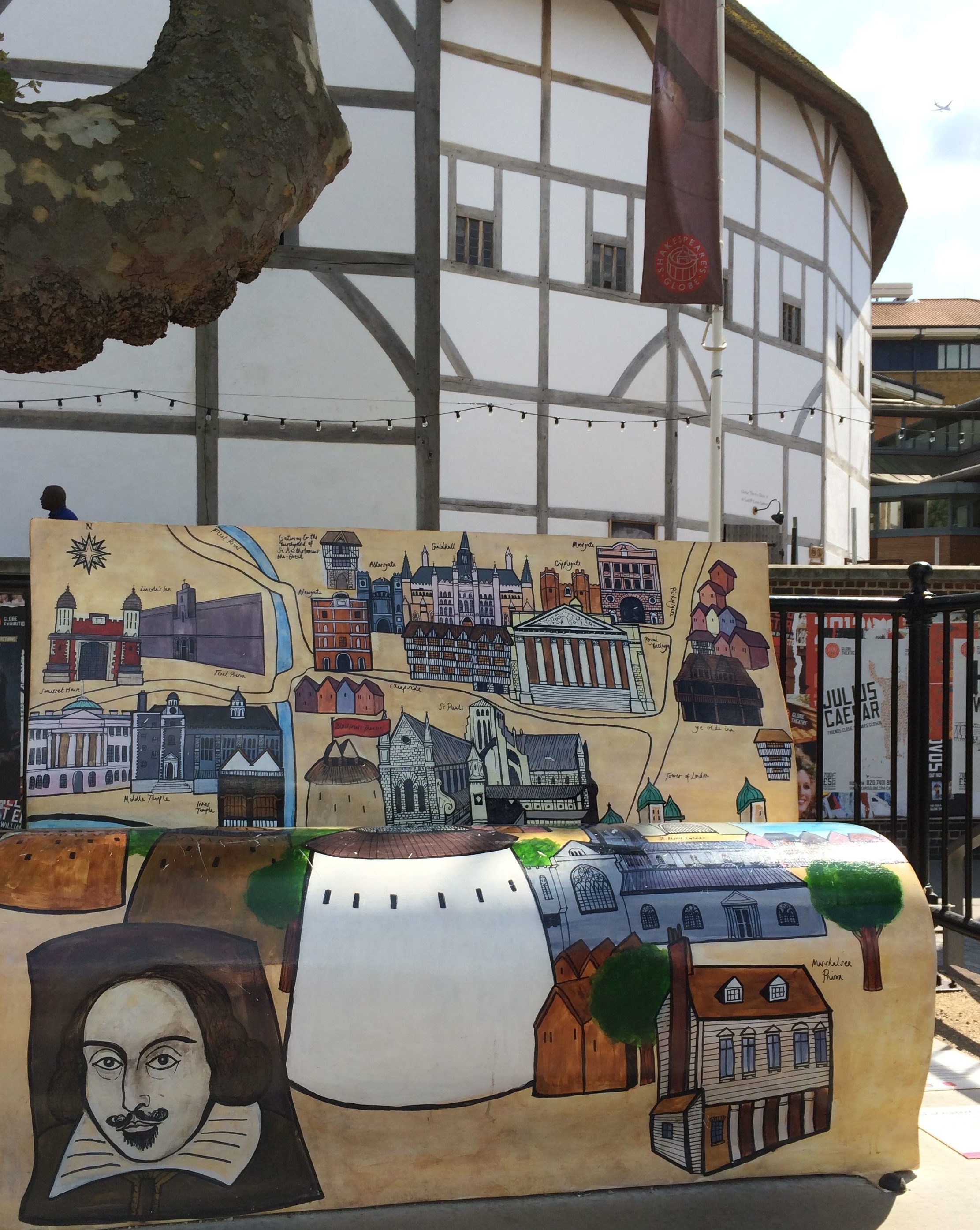 This is the bench dedicated to the plays of William Shakespeare, situated right outside the replica of his Elizabethan-era Globe Theatre. (Click here for a larger version of the front.)